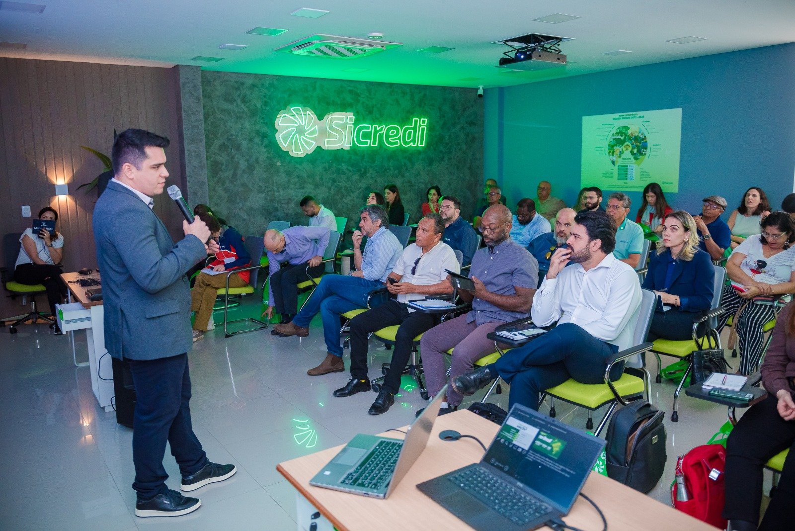 O presidente da Sicredi Biomas Sr. Eduardo Ferreira falou sobre a importância de falar sobre a missão da cooperativa nesta oportunidade. “Somos um sistema de crédito cooperativo que valoriza as pessoas e promove o desenvolvimento local de forma sustentável e nesta ocasião mostramos o nosso modelo de negócio na colaboração, equidade e sustentabilidade, nessa jornada cooperativa rumo a COP 29”, declarou.