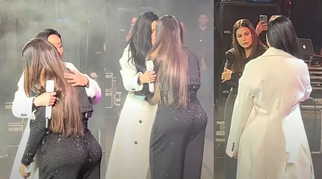 Ao entrar no palco, Simaria pulou no colo da irmã, Simone, que questionou a surpresa: “Você saiu de dentro de uma caixa? Onde é que você estava?”