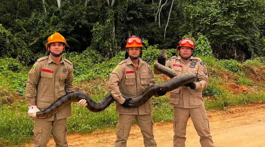 A tarefa de resgatar a serpente não venenosa exigiu dos militares habilidade e precaução devido ao seu tamanho e peso.