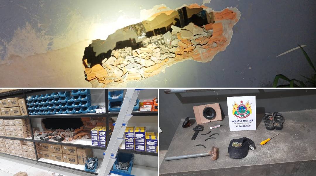 Ao chegarem ao local, quatro pessoas foram flagradas quebrando a parede em uma tentativa de furto. Eram três homens e uma mulher. Quando os criminosos perceberam a presença da viatura, fugiram imediatamente, abandonando a cena do crime.
