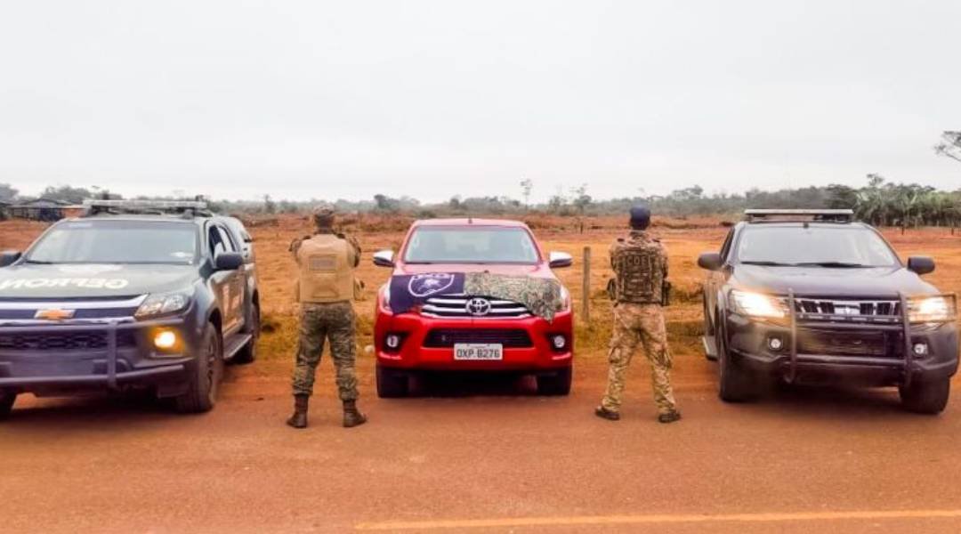 A ação policial integrada resultou na recuperação da caminhonete HILUX, cor vermelha, roubada em Rio Branco, no bairro Cadeia Velha, na quarta-feira (1). Além disso, os agentes efetuaram a prisão de F. J. C. L. de 31 anos, que vinha sendo monitorado para o cumprimento de sentença restritiva.
