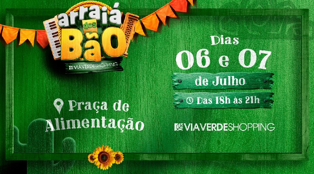 Neste mês das férias, uma das principais atrações do Via Verde é o “Arraiá dos Bão”. O evento promete trazer muita diversão e entretenimento para todas as idades, com uma programação repleta de atividades típicas e apresentações musicais inesquecíveis.