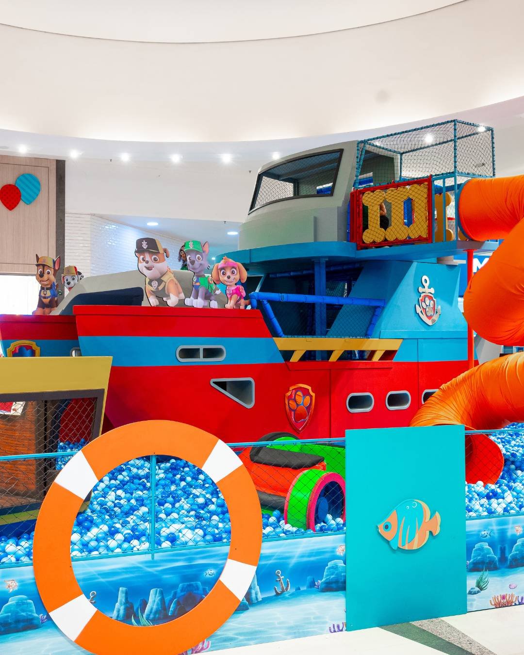 Localizado na praça de alimentação, em frente ao cinema, o ambiente temático surpreende com diversas atrações que garantem brincadeiras inesquecíveis: um mar de bolinhas gigante, um navio patrulha cheio de mistérios, caça ao tesouro interativo e outras surpresas que fazem cada momento ser único. É a oportunidade perfeita para explorar, brincar e mergulhar em um universo lúdico cheio de cores e aventuras.