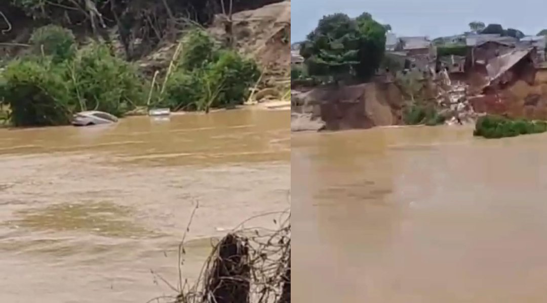 Vídeos que circulam nas redes sociais mostram casa e carros dentro dentro do Rio Acre, após desmoronamento no bairro Cidade Nova, na rua Poços de Caldas, um dos mais afetados pela enchente de 2024. Outras duas residências também foram derrubadas, mas não foram registradas em vídeo.