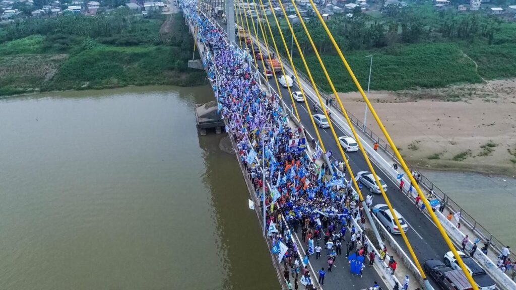 A multidão cantava com alegria as músicas de Zequinha Lima, em um grande ato de apoio. Enquanto o início da caminhada que saiu da ponte da União chegou na área dos mercados, o final ainda estava nas proximidades da praça de táxi.
