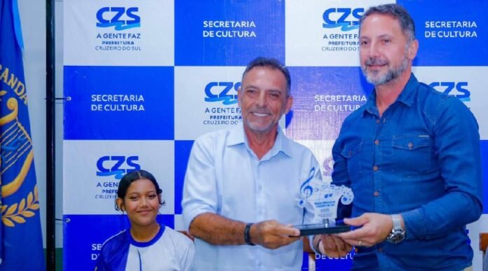 Durante a programação, Zezinho Barbary recebeu o Troféu Amigo da Banda de Cruzeiro do Sul, reconhecimento pela parceria e pelo compromisso com o fortalecimento das políticas culturais e com a ampliação de oportunidades para crianças e jovens.